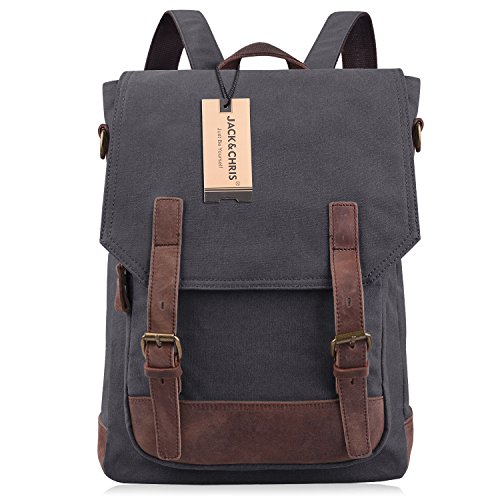 Best Seller! Jack&Chris®New Vintage Canvas Genuine Leather Schoolbag Shoulder Bag Backpack,MC6914 (grey) Review